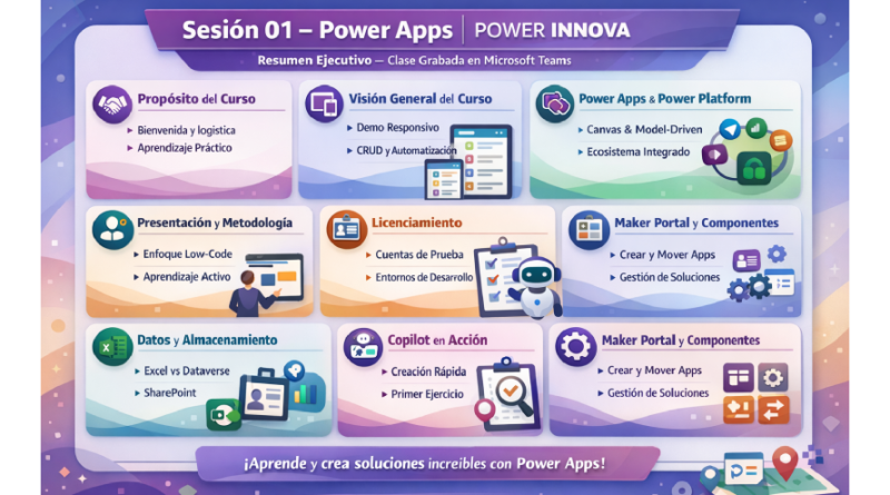 - Se presentó el enfoque del curso: aprendizaje práctico, construcción progresiva de una solución y uso de herramientas de Power Platform (Power Apps + integraciones).