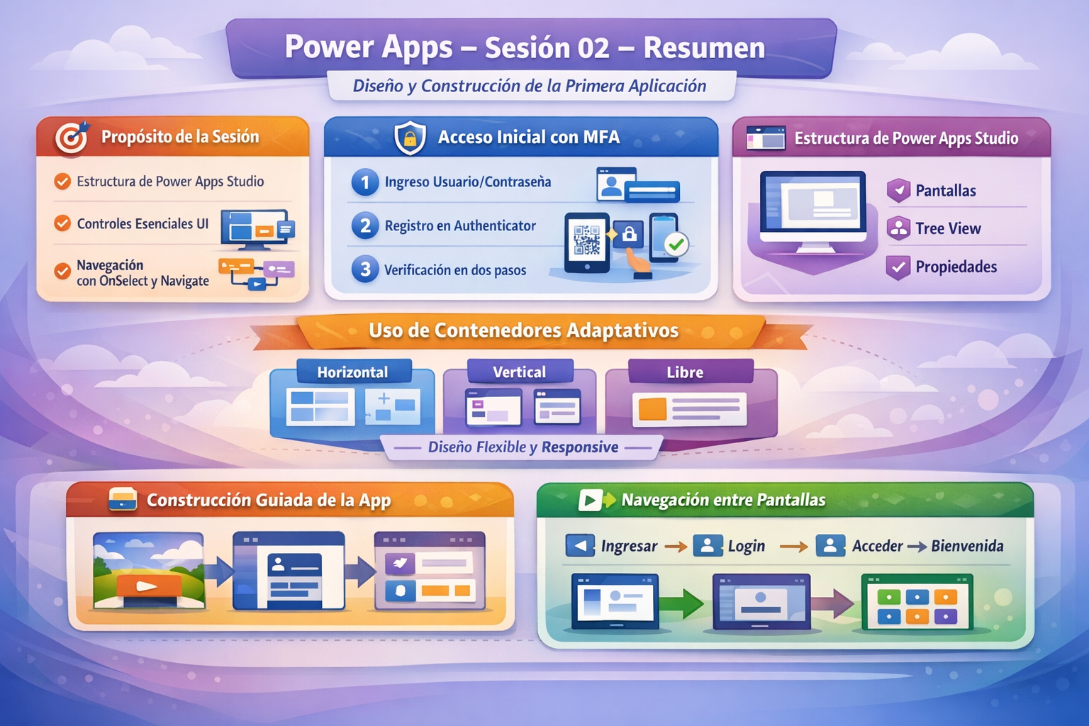 - La sesión consolidó la base para construir Canvas Apps profesionales: primero estructura (contenedores) y luego lógica (validaciones, datos). [learn.microsoft.com], [learn.microsoft.com]