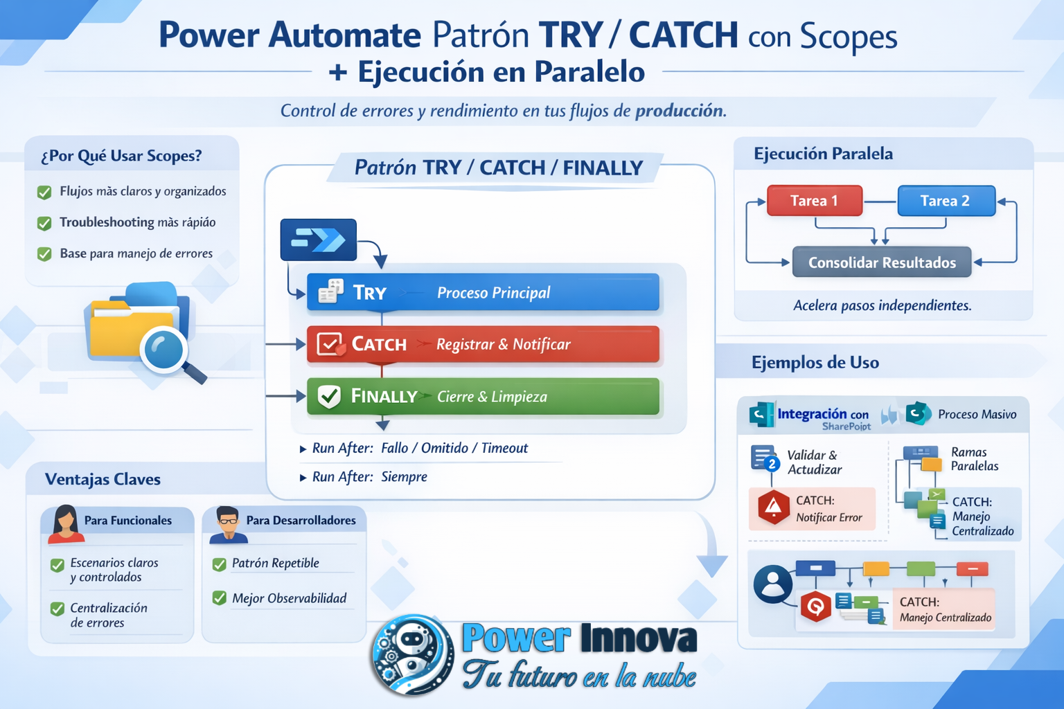 Power Automate – Patrón TRY/CATCH con Scopes + ejecución en paralelo